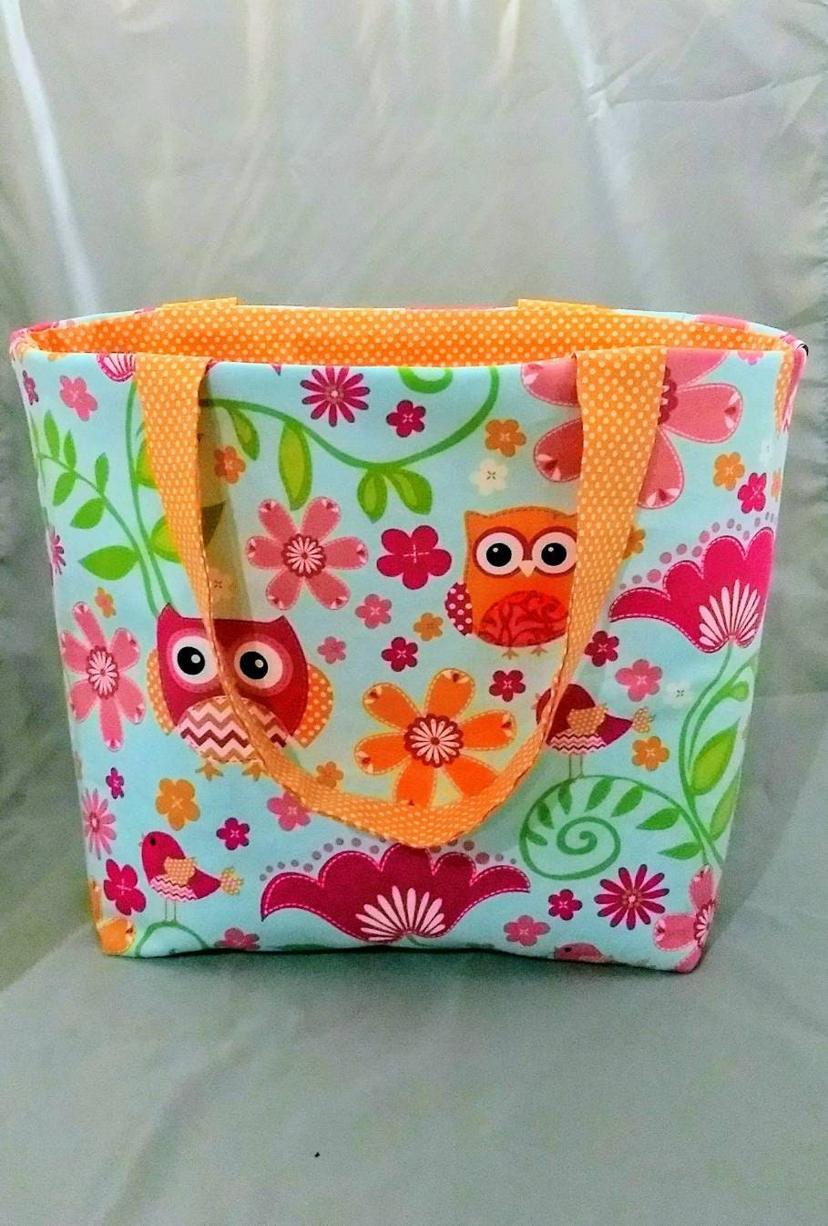 Spring Owl Beach Bag or Tote Bag with Pocket